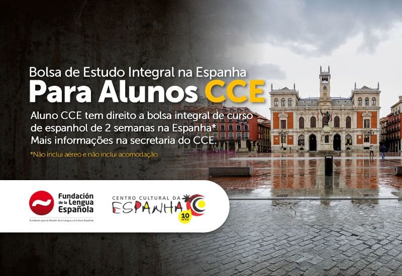 Não se trata de sorteio, todos os alunos matriculados no plano de 4 módulos do curso de espanhol do CCE terão direito a bolsa integral e gratuita!